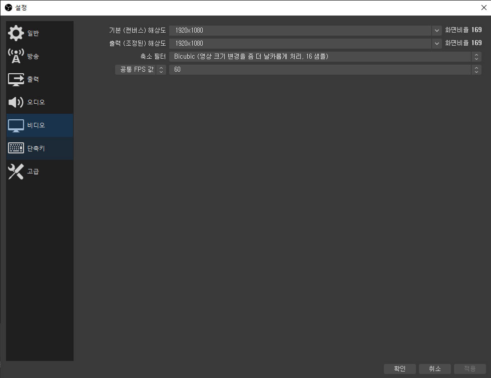 설정에서 비디오 관련 항목의 설정을 변경합니다.