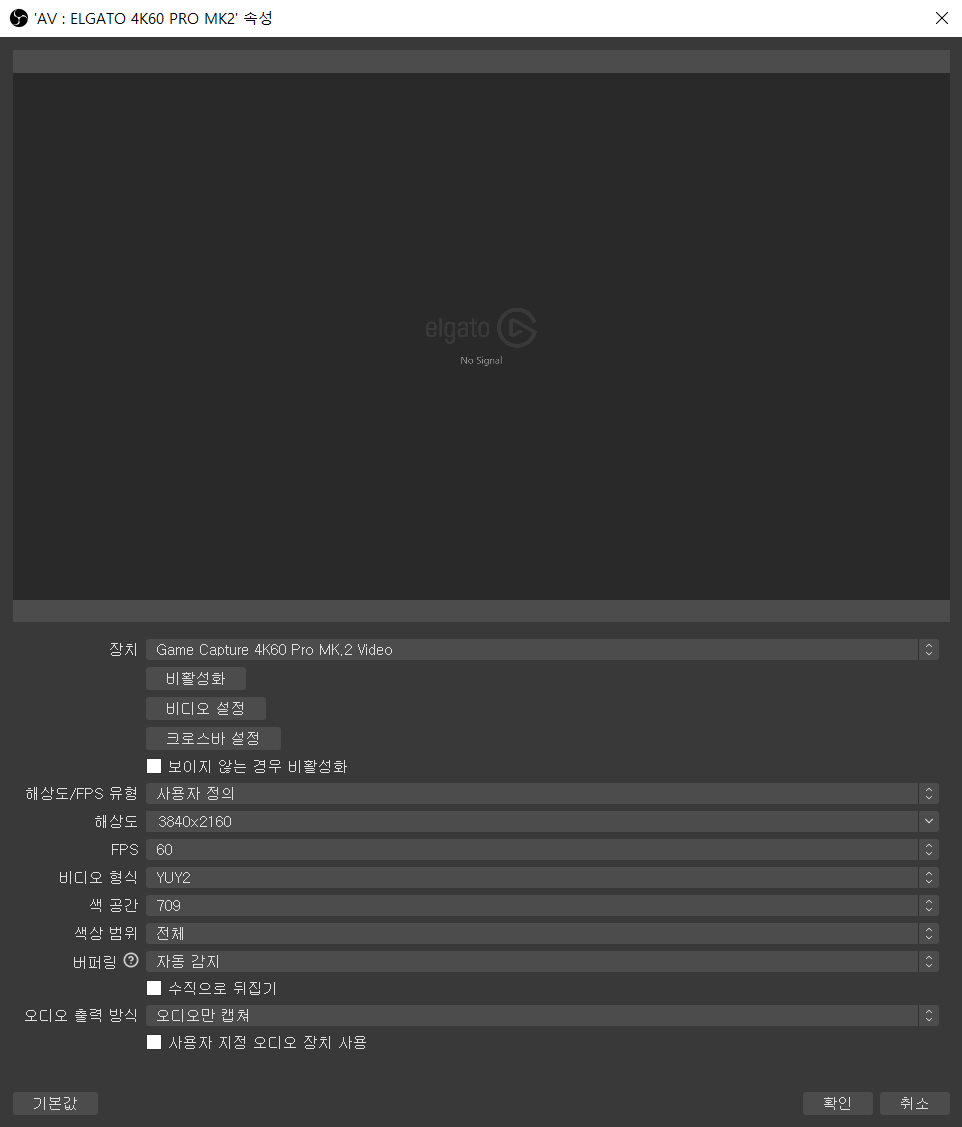 소스에서 "비디오 캡쳐 장치"를 추가한 후, 설정을 하면 됩니다.